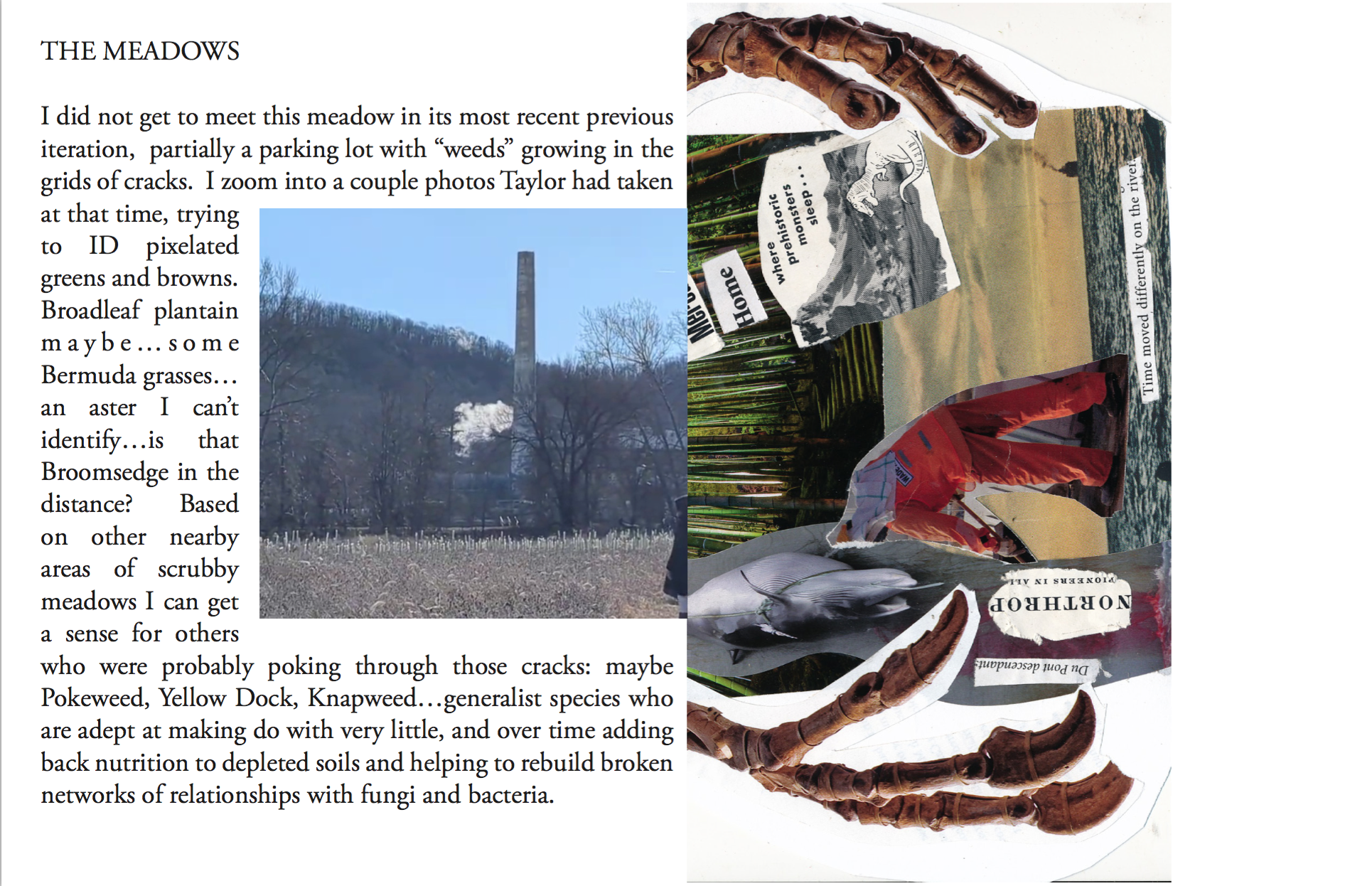 Throughout 2023, a group of interdisciplinary artists & land stewards gathered at the construction/deconstruction zone of "Staunton Mall," which after 50 years of materially ordered existence has been mostly demolished...to perhaps be replaced by...another mall? We gathered video and photographic evidence of our experiences and art-making there. We presented a short video of work-in-progress sound/dance experiments and field notes at the "Uncertainty Potluck" show at Queen City Brewing - those gatherings were catalyzed by local artist Rachel Austin. The film was also selected as part of the "Art is a Natural Bridge" show at Midmountain. //The 6 minute video is available upon request.// Topics of interest: Disturbance as portal; successional tension of a landscape; Relationship with place; Simultaneity of nostalgia and the grotesque; Disposability - - - - - decomposability; artifice/reality; Spiritual digestion; Resilience and first-responder plants. ///// ///// In May 2024, our group catalyzed a curated art happening (a memorial for the Staunton Mall) at SolArt in Saunton, which included other artists work regarding the Staunton Mall and dying malls generally. We did a live performance with sound, movement, and video, and also hosted an open mic.///// Throughout 2024 we have been and will continue to meet at a series of identified local liminal areas, whether due to de(construction) and real estate companies, altered ecological trajectory, storm damage, abandonment/haunting, potential refugia, or other undefinable places of transition that otherwise go unnoticed or uncared-for in mainstream awareness. -